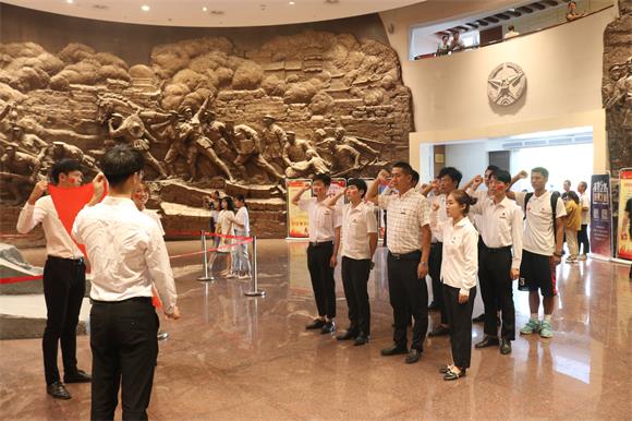 最后,全体人员在团旗下重温入团誓词,庄严的誓词声响彻八一馆展厅。