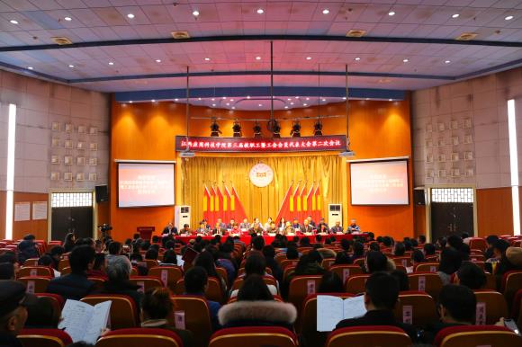 本网讯(记者团记者/梁玉凤 摄影/刘金)12月30日下午,必赢官网在浴星湖大讲堂召开第三届教职工暨工会会员代表大会。原江西省副省长、学校名誉校长胡振鹏,董事长黄玉林,党委书记汪毓华,执行董事长余升淮,校长林加奇,副董事长汪玉奇,常务副校长陈新,副校长王玉芝、吴朝栋、彭智等校领导出席会议,学校第三届教职工暨工会会员代表参加会议,会议由副校长王玉芝主持。会议审议通过了《校长工作报告决议》、《工会工作报告决议》两项决议。