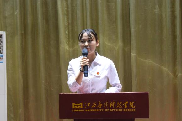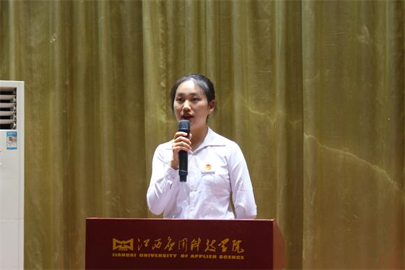 会上,现代管理学院2016级物流管理专业学生谢忠宝、2018级酒店管理专业学生鄢彩云,教育与体育学院2017级学前教育专业学生李梦雪,他们分别以“我的成长之路”、“青春正当时,共筑中国梦”、“护旗手,前来报到”为主题作宣讲发言。