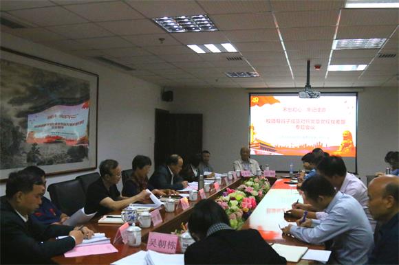 本网讯(记者/刘金 摄影/刘彦辰)10月11日,按照学校“不忘初心、牢记使命”主题教育领导小组部署要求,学校在综合楼六楼会议室召开主题教育领导班子对照党章党规找差距专题会议,认真学习贯彻习近平总书记重要指示和党中央决策部署,以正视问题的自觉和刀刃向内的勇气,逐一对照、全面查找问题,切实增强党的意识、党员意识、纪律意识,不断提升政治境界、思想境界、道德境界,扎实推动主题教育不断走深走实。