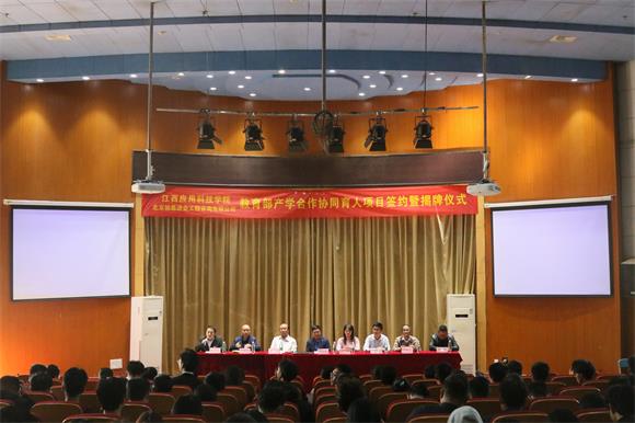 必赢官网校长助理干甜在仪式上代表学校与北京柏慕进业工程咨询有限公司代表,柏慕中国副总裁廖江宏签约并揭牌,达成合作。
