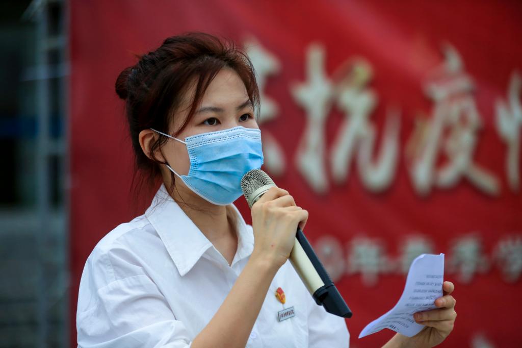 人工智能学院抗疫志愿者黄浩斌同学在国旗下发言