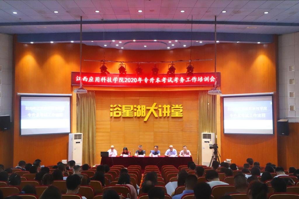 校长助理彭如春在会上详细介绍了考试流程、安排及宣读专升本考试管理考试舞弊的规定和处理意见,并播放高考组织考试视频作为考务人员参考准则。