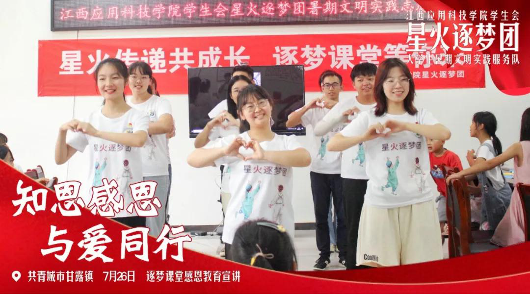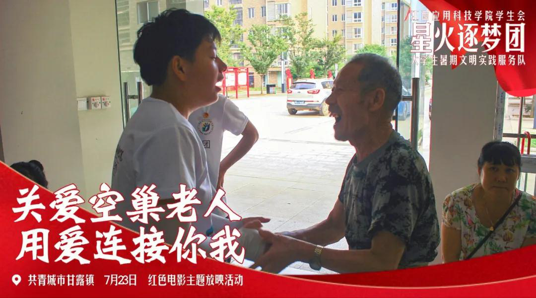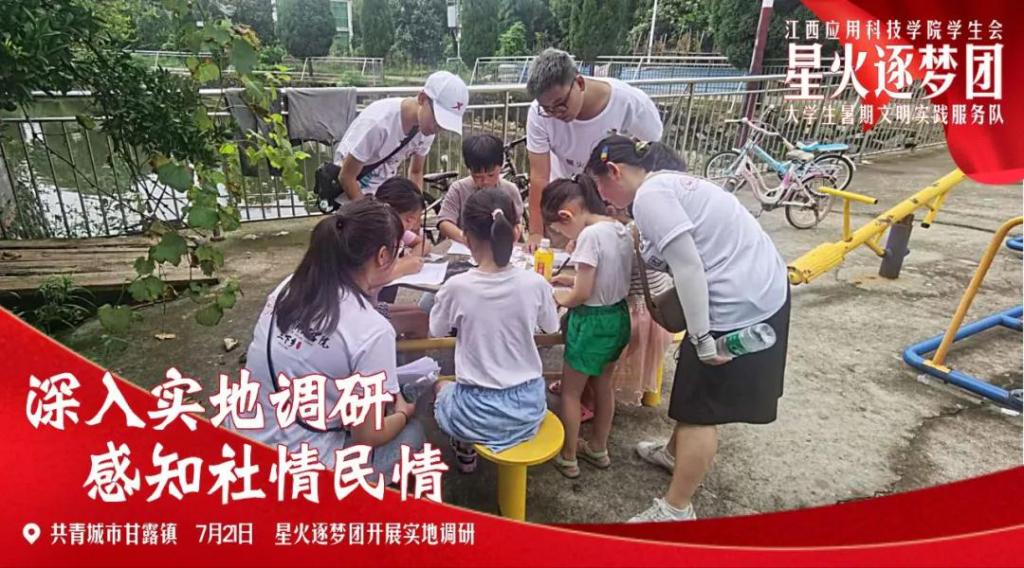 星火逐梦团志愿服务队于7月21日至7月27日在江西省共青城市甘露镇创业社区、甘露村等地,开展关于儿童教育问题和老人生活情况的实地调研。他们协助当地居委参与环保工作,开展了社区环境整治、“关爱空巢老人”主题红色电影主题放映,留守儿童暑期兴趣培训班等。