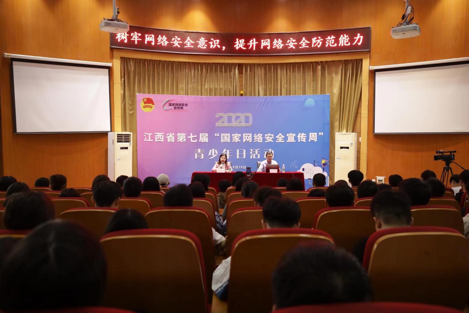 本网讯(通讯员/张一帆)9月18日下午,学校在浴星湖大讲堂举办江西省第七届“国家网络安全宣传周”青少年日网络安全知识分享会,国家计算机网络应急技术处理协调中心江西分中心网络信息安全专业工程师万子龙进行授课,超过400名学生在现场聆听讲座,800余名师生线上通过微博直播进行学习。