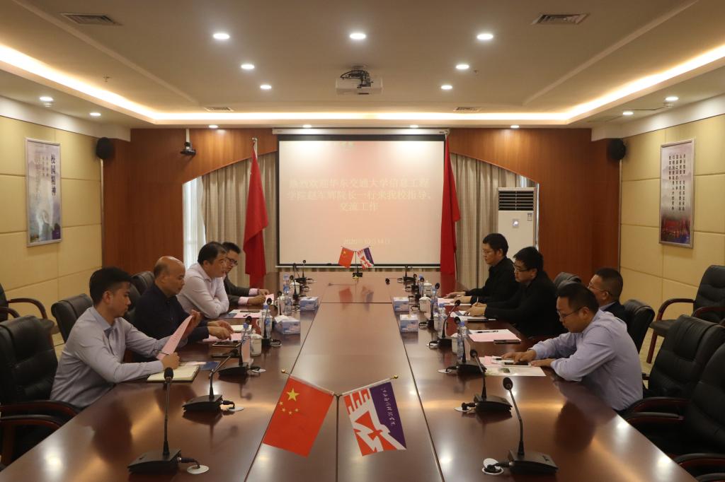 学校校长助理彭如春、软件与区块链学院党总支副书记吴春芃、软件与区块链学院副院长邓春华,华东交通大学信息工程学院党委书记蔡卫平、信息工程学院副院长汤文亮、信息工程学院党委副书记何忠坚参加会议。