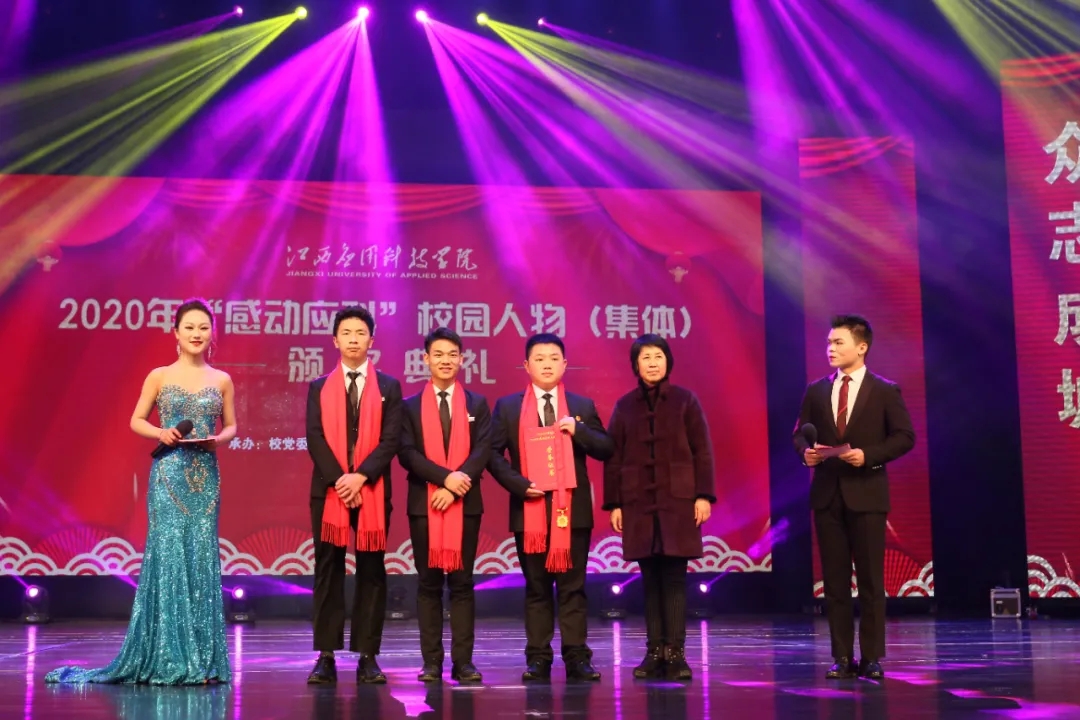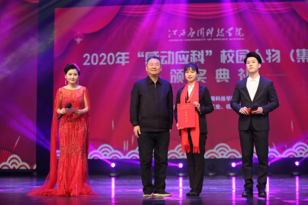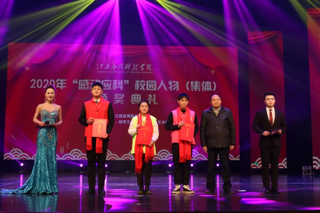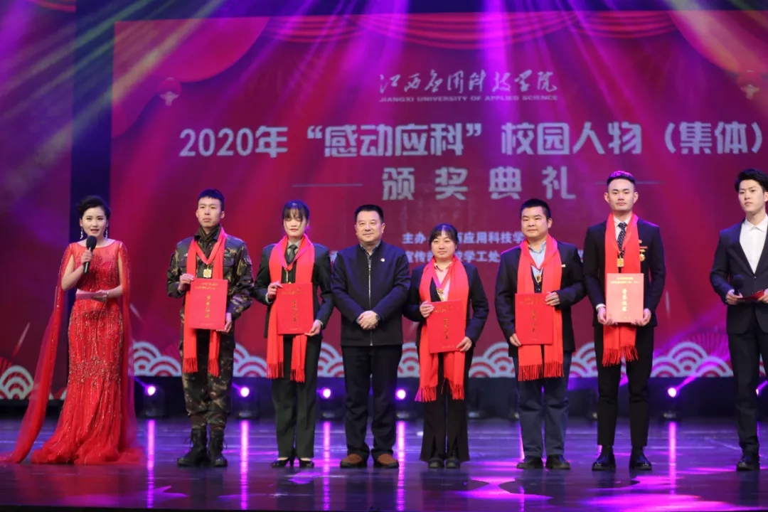 颁奖典礼上,最美抗疫师生张伟健、郭新巧、黄浩斌,抗疫夫妇瞿振东、李雅琴,2020年江西省最美大学生李艾玲,公益志愿服务集体童趣童团队、“美丽中国 我是行动者”社会实践调研团、返乡推普·语你相约社会实践队,教学科研代表王慧、魏雅姝、胡灵芝,优秀后勤工作人员徐银苟,创新创业团队全国大学生机械创新设计大赛一等奖获奖团体,自强之星集体官协、肖海莉、宁曼丽等荣获2020年度“感动应科”人物。