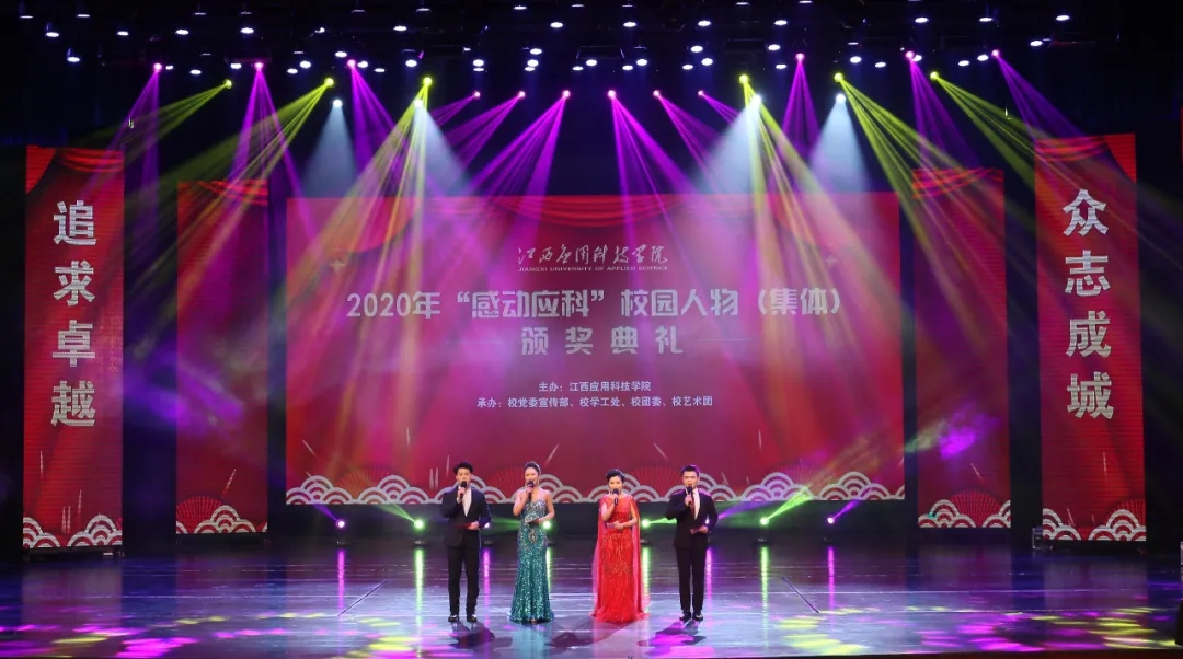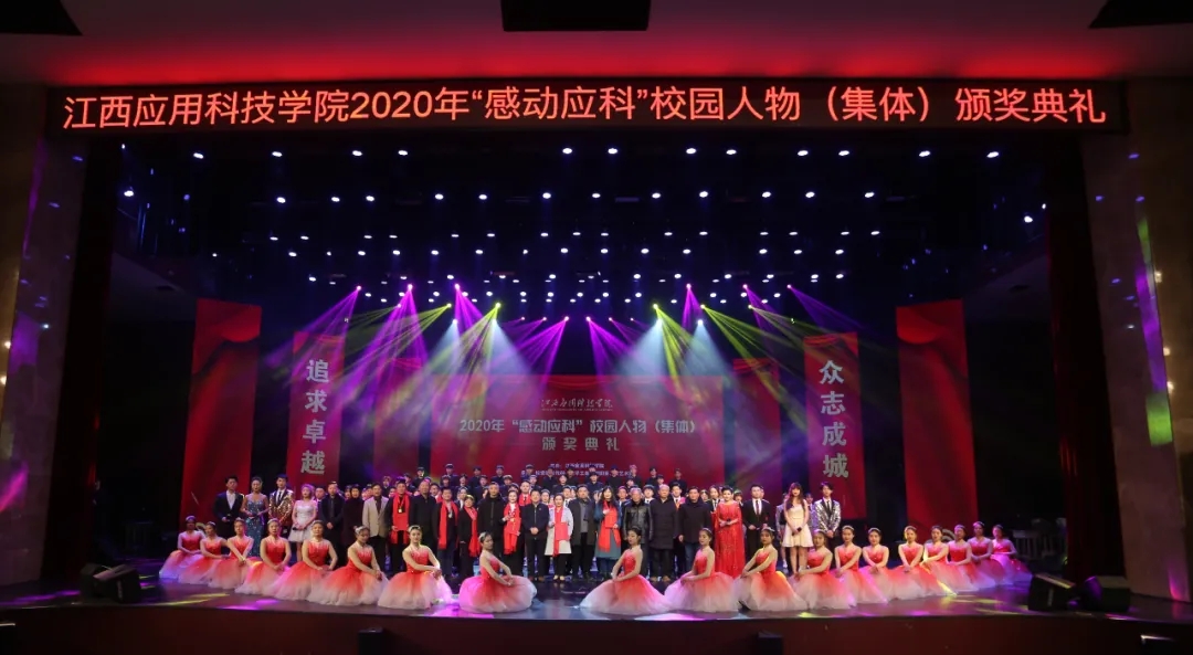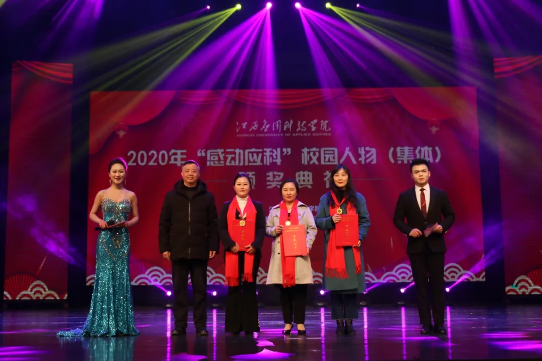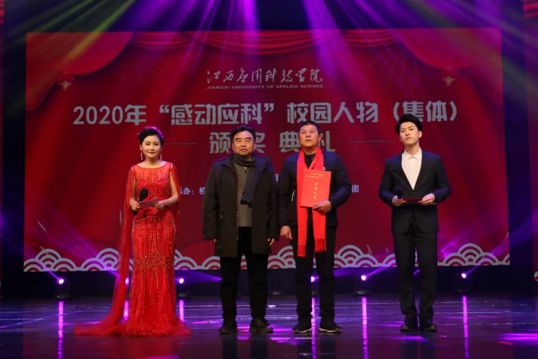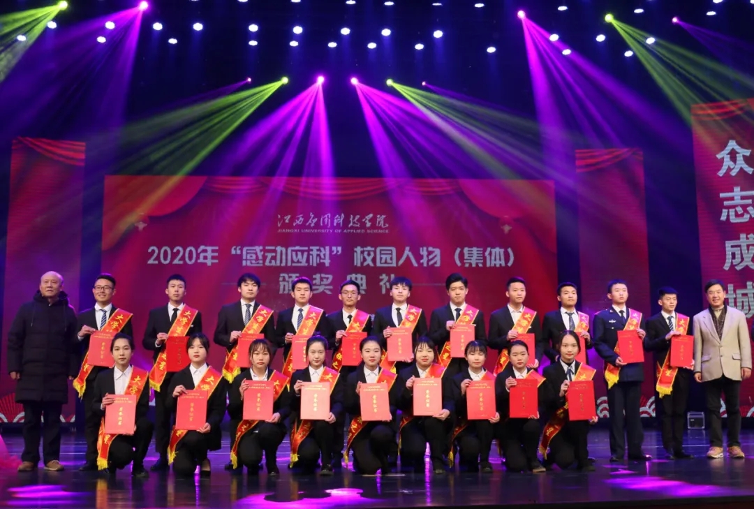 颁奖典礼上,最美抗疫师生张伟健、郭新巧、黄浩斌,抗疫夫妇瞿振东、李雅琴,2020年江西省最美大学生李艾玲,公益志愿服务集体童趣童团队、“美丽中国 我是行动者”社会实践调研团、返乡推普·语你相约社会实践队,教学科研代表王慧、魏雅姝、胡灵芝,优秀后勤工作人员徐银苟,创新创业团队全国大学生机械创新设计大赛一等奖获奖团体,自强之星集体官协、肖海莉、宁曼丽等荣获2020年度“感动应科”人物。