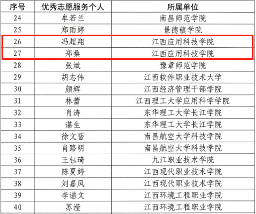 本网讯(记者/刘金)1月13日,省委教育工委、省教育厅、省文明办公布了 2020 年全省高校大学生暑期文明实践志愿行动评选结果,72886必赢网站冯超翔、郑桑两名同学获“江西省大学生暑期文明实践活动‘优秀志愿服务个人’”荣誉称号。