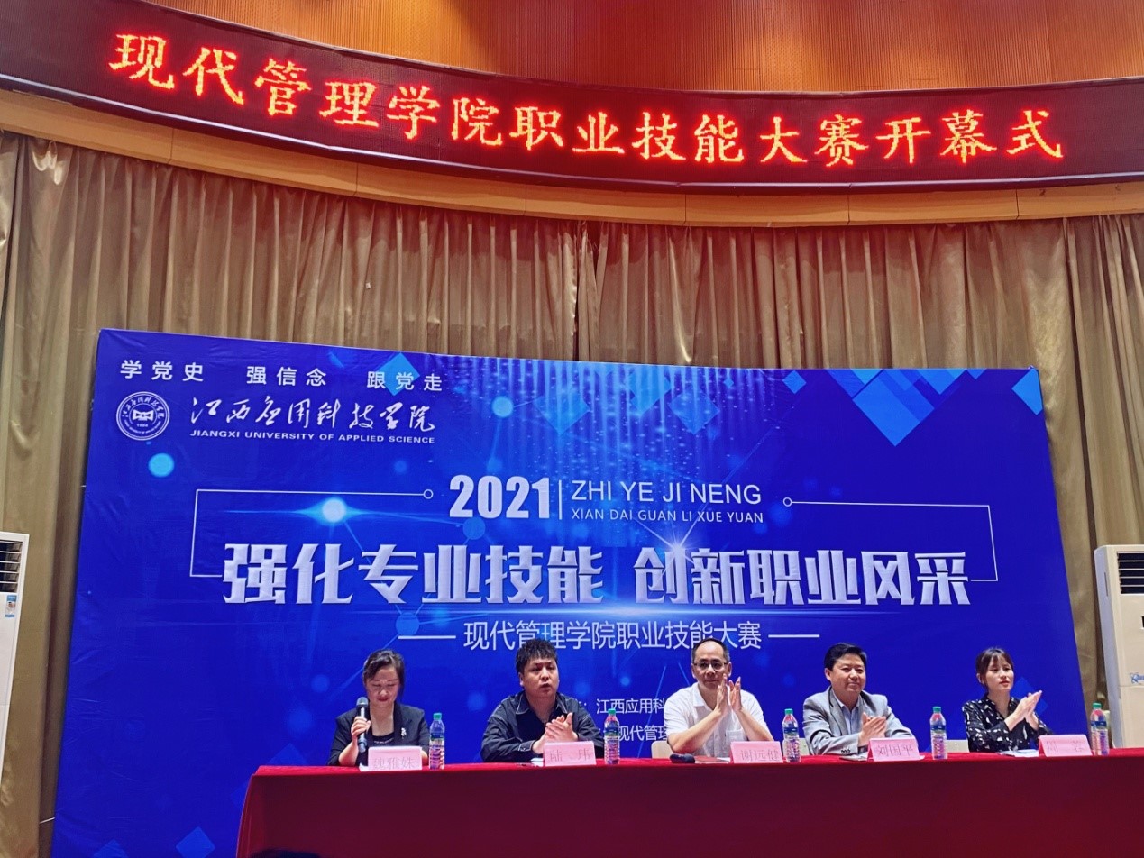 本网讯:4月23日中午,现代管理学院职业技能大赛开幕式在浴星湖大讲堂举行,本届大赛得到了学校领导的高度重视和大力支持,现代管理学院院长谢远健、现代管理学院党总支书记刘国平等学院领导出席了本次活动,活动仪式由现代管理学院教务科科长魏雅姝主持。