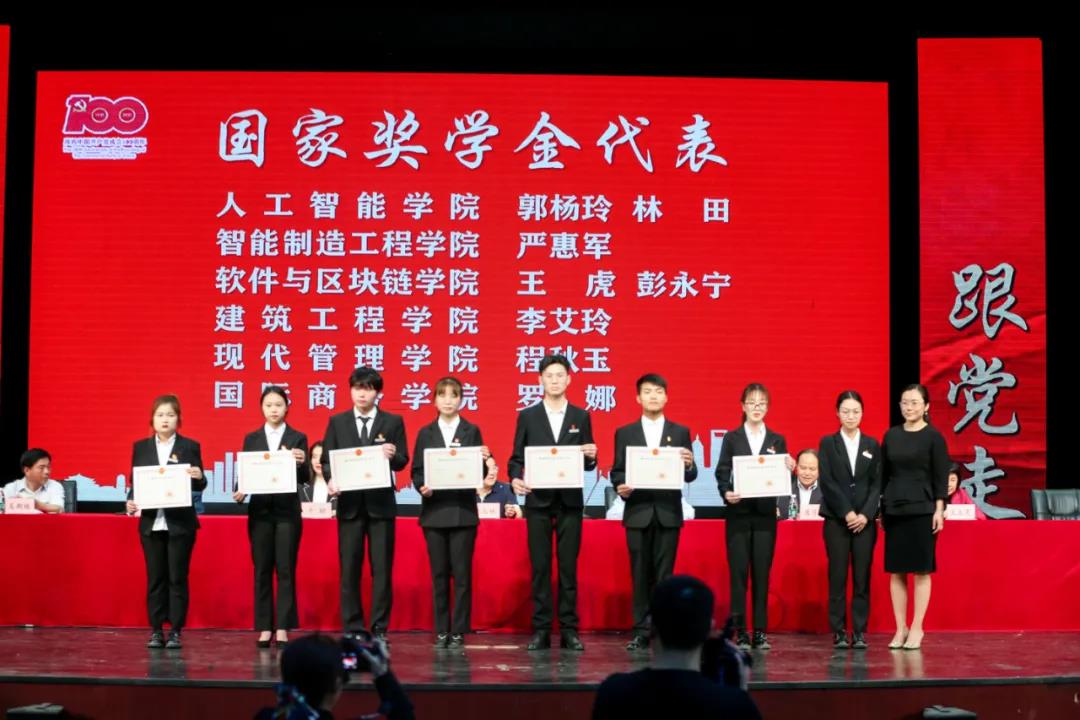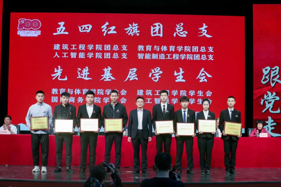 大会上,共表彰了建筑工程学院团总支、教育与体育学院团总支、人工智能学院团总支、智能制造工程学院团总支4个五四红旗团总支;教育与体育学院学生会、建筑工程学院学生会、国际商务学院学生会、人工智能学院学生会4个先进基层学生会;人工智能学院郭杨玲、人工智能学院林田、智能制造工程学院严惠军等8名国家奖学金代表;现代管理学院鄢江丽、软件与区块链学院钟永芳、艺术设计学院饶芳芳等10名考研十大标兵;教育与体育学院阮国良、智能制造工程学院曾令涌、财经学院聂方付等10名2021届毕业班校友联络员;唐燕琴、赵敏、许永飞等10名十佳青年辅导员;李洁、单桂娟、刘锦莲等23名优秀青年教师;兰东东、肖利、涂湘莹等10名学科竞赛优秀指导老师;电子商务教研室、软件工程教研室、机械设计及其自动化教研室等12个优秀教研室。