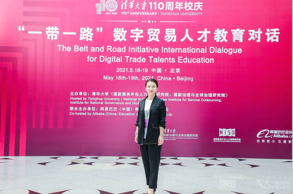 本网讯:5月18-19日,在清华大学110周年校庆期间,“‘一带一路’数字贸易人才教育国际对话”在清华校园隆重召开。作为阿里巴巴集团数字贸易人才培养优秀合作院校,辰林教育集团执行董事干甜应邀参加对话活动,并作交流发言。