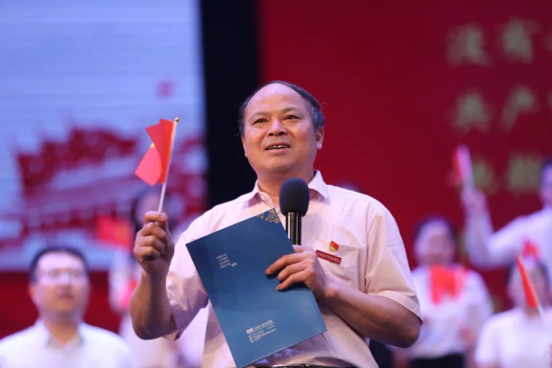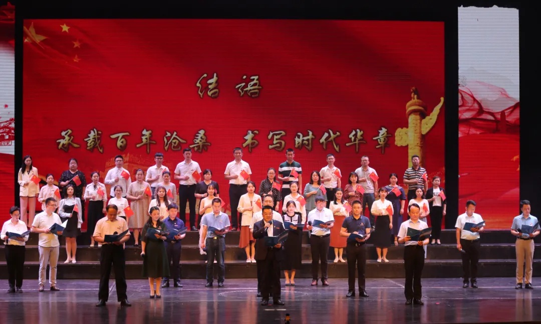董事长黄玉林和青年教师一起朗诵《党的百年》诗篇,