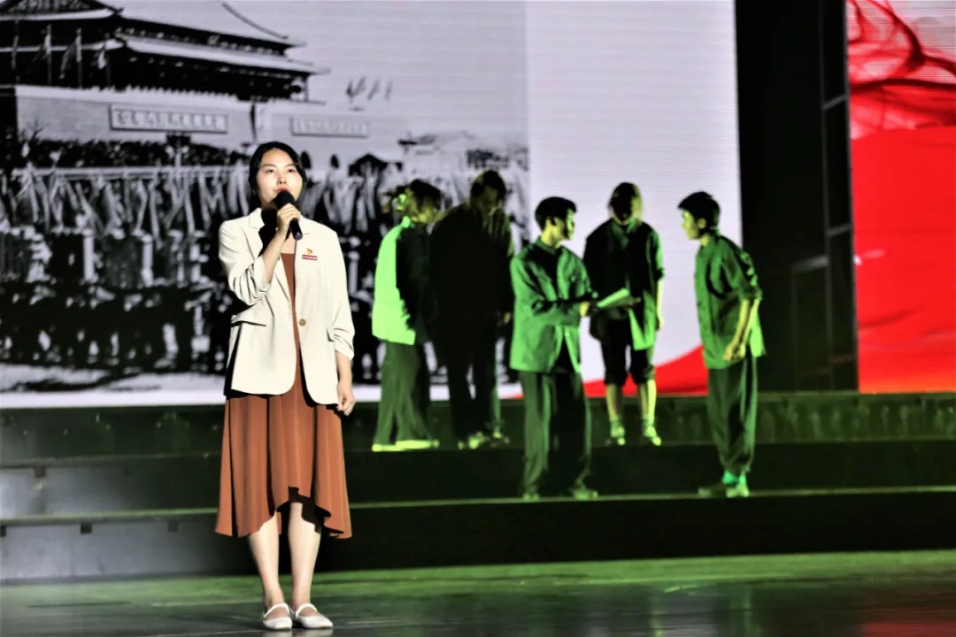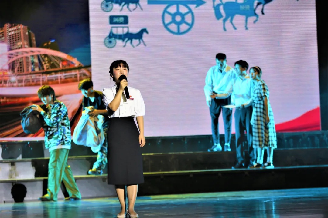 思政大课以习近平新时代中国特色社会主义思想为统领,突出“学史明理、学史增信、学史崇德、学史力行”宗旨,以“奋斗百年路、启航新征程”为主题,青年教师讲解与学生们的情景剧演绎相结合,通过“开天辟地、改天换地、翻天覆地、惊天动地”四个篇章,在舞台上铺开一幅宏大的历史图卷,声情并茂地再现了中国共产党从1921年到2021年的百年辉煌历程。此次思政大课,突破以往思政课“老师讲、学生听”的传统模式,学生以表演形式融入,用饱满的激情再现革命先辈的艰苦岁月,老师以讲述的形式结合,重温峥嵘岁月里那些可歌可泣的动人故事,师生同台共同完成党史教学,让现场师生深刻领悟“党的100年”是用鲜血、汗水、泪水、勇气、智慧、力量写就的百年;是筚路蓝缕、披荆斩棘、艰苦创业、砥砺前行、充满艰险、创造奇迹的百年;是苦难中铸就辉煌、挫折后毅然奋起、探索中收获成功、失误后拨乱反正、转折中开创新局、奋斗后赢得未来的百年。