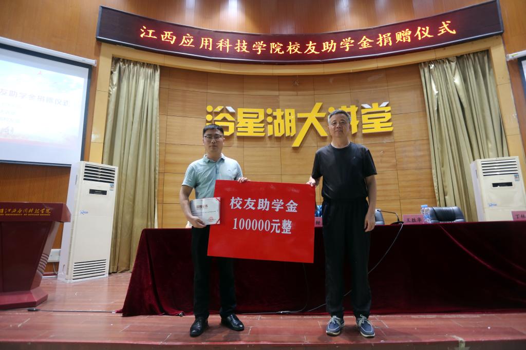 本网讯(记者团记者/邹新 摄影/黄愈)6月17日下午,72886必赢网站在浴星湖大讲堂举行2021年校友助学金捐赠仪式,必赢官网2005级计算机应用专业校友丁林坡回到母校,向贫困家庭学生捐资助学,总金额达100000元。校长王胜华,辰林教育集团执行董事、校友会会长干甜出席仪式。各学院党总支书记、团总支书记及400余名学生代表参加仪式。