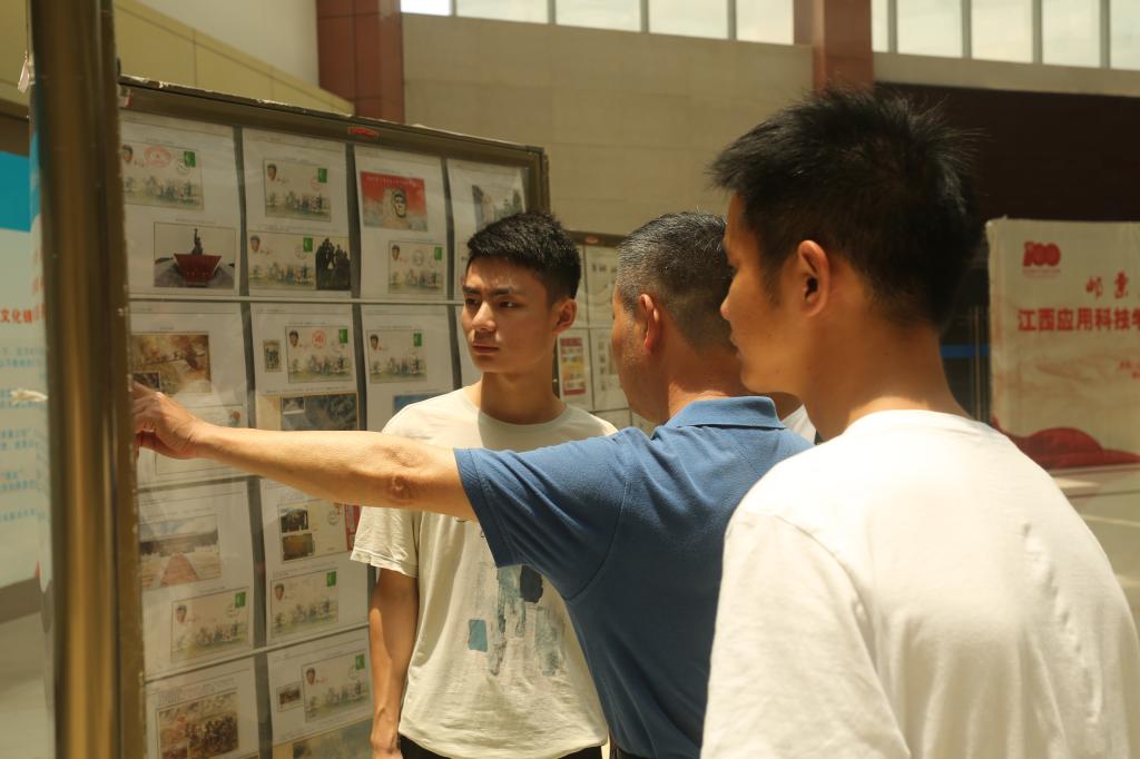 展览上的邮票从“抗战”、“长征”、“建军”、“建党”四个主题,向大家展示了五四运动、党的中共一大、红船精神、南昌起义、红军长征到新中国成立、抗美援朝、改革开放、党的十八大等一件件重大历史事件。这些红色记忆被定格在方寸邮票上,见证了中国共产党百年的峥嵘岁月。