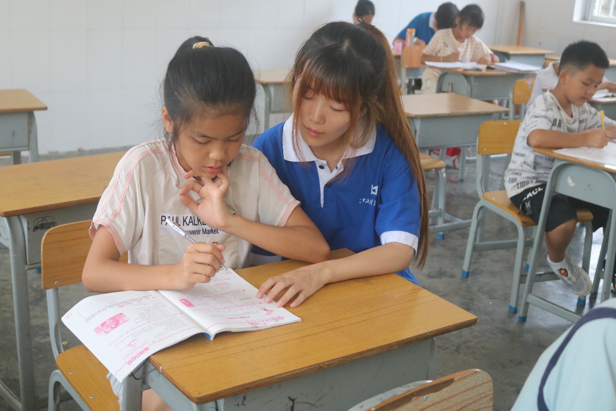 实践团成员为孩子辅导作业