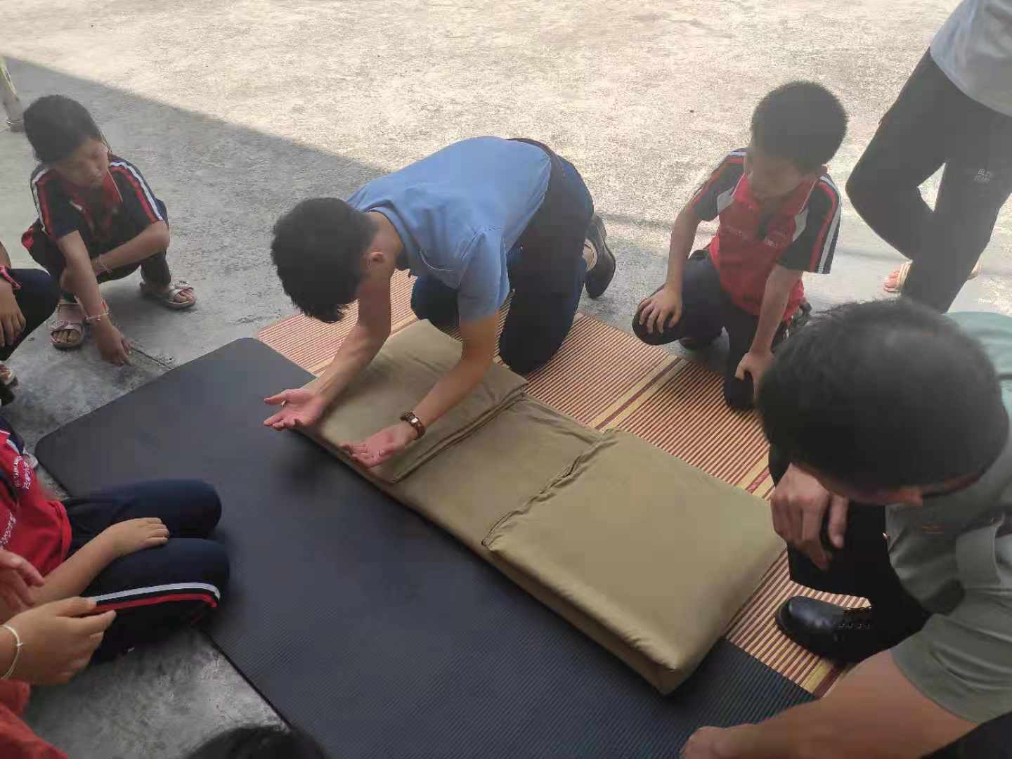 实践团成员教孩子们叠被子