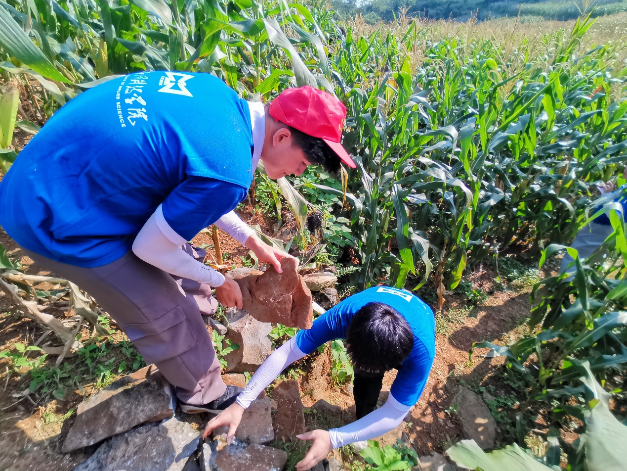 实践团成员为当地村民干农活
