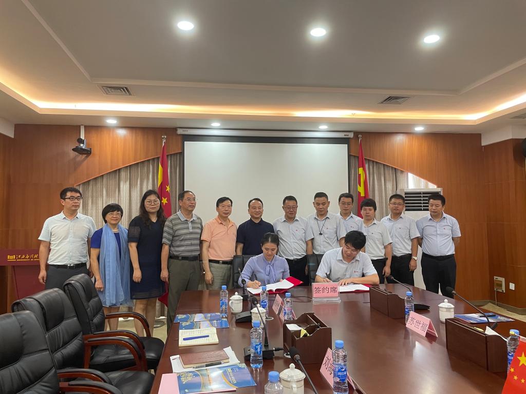 超星集团江西分公司总经理黄云、副总经理曾福平、课程总监曹冬铭、市场经理陆承彬、市场经理苏世福、市场专员曾樊峰以及学校校长助理刘海梅、教务处常务副处长蒋德勇、刘光华自然遗产博物馆常务副馆长何平、图书馆馆长谢新根参加会议。
