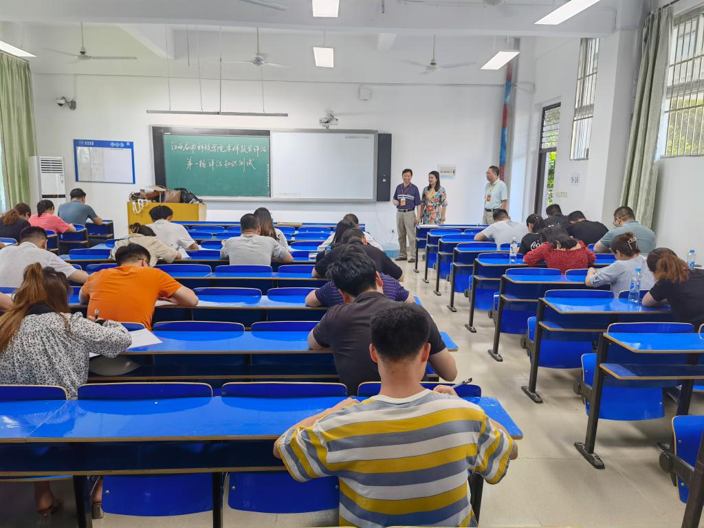 现场采取笔试(闭卷)形式进行考试。测试的内容主要为学校下发的《本科教学工作合格评估学习手册(一)》中的“第二部分”,即普通高校本科教学工作合格评估36问及新《本科教学工作合格评估指标体系》内涵解读。考场上,每位教职员工认真答题,遵守考试纪律,考场秩序井然。