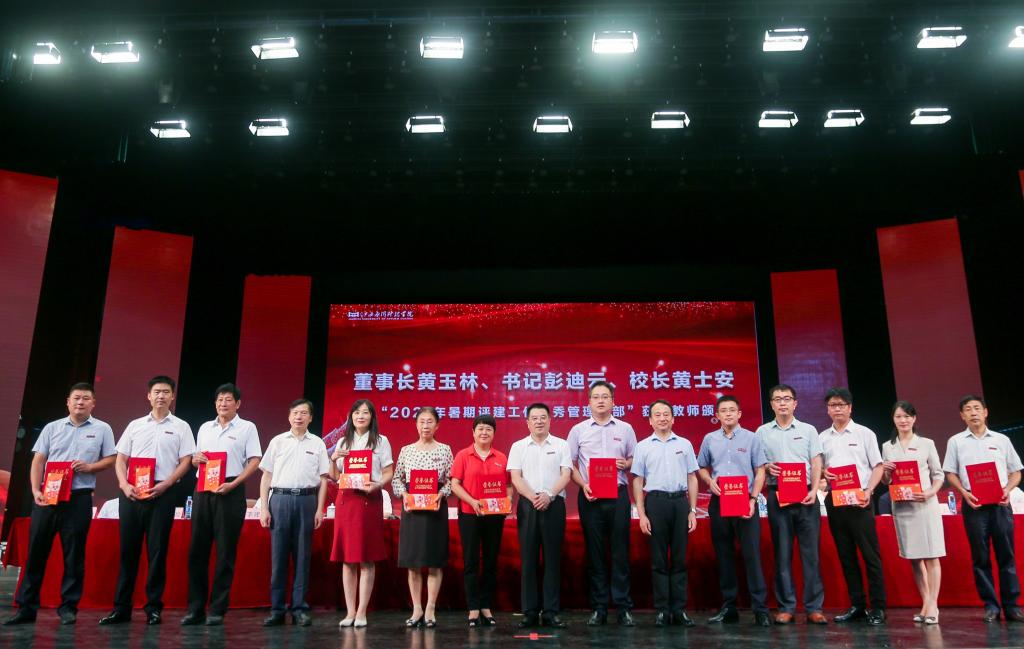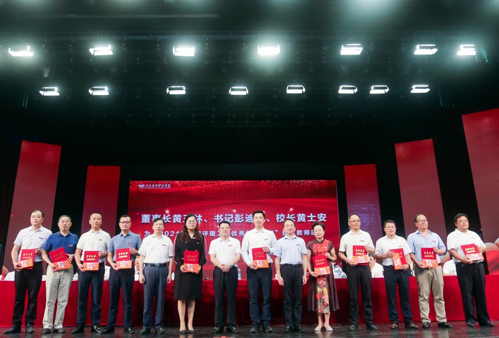 大会上,董事长黄玉林、党委书记彭迪云、校长黄士安、常务副校长干甜、党委副书记席芳宽、副校长陈恳、李建萍、胥懋云、房小珍、王立、张敏先后为“2021年暑期评建工作优秀管理干部”、“金牌教授”获得者、“金牌青年教师”获得者以及“新时代学生心中的好老师”“新时代学生心中的好辅导员”颁奖。