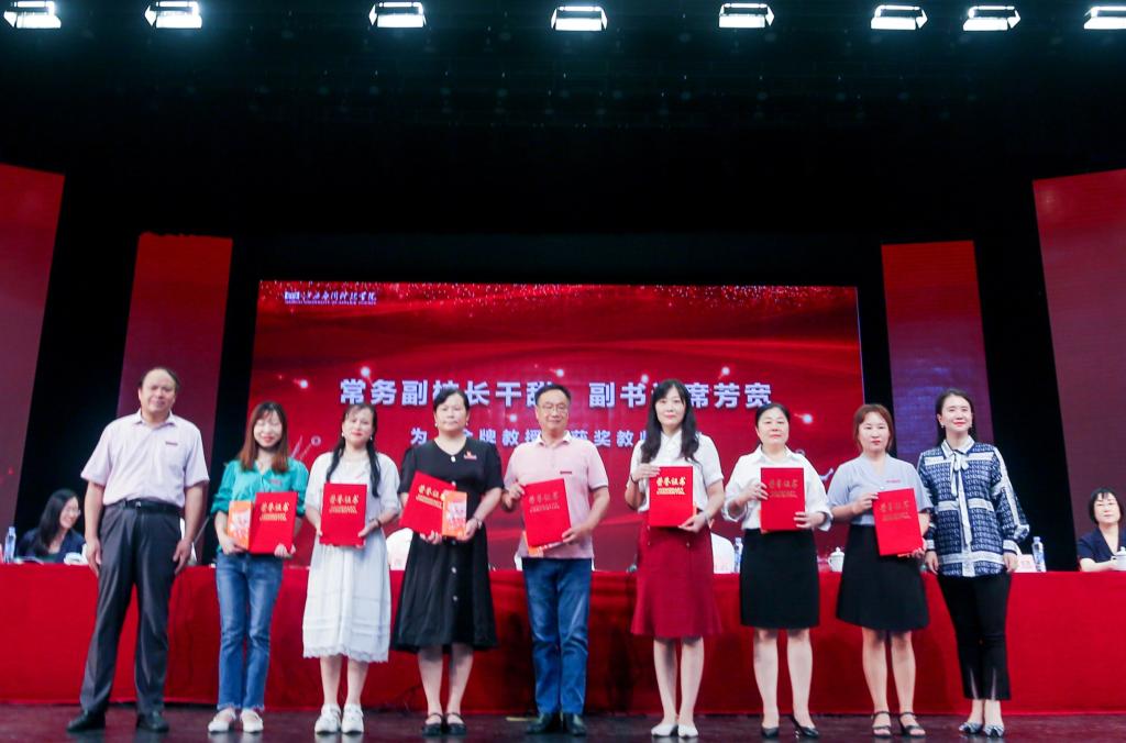 董事长黄玉林、党委书记彭迪云、校长黄士安为获奖教师颁奖
