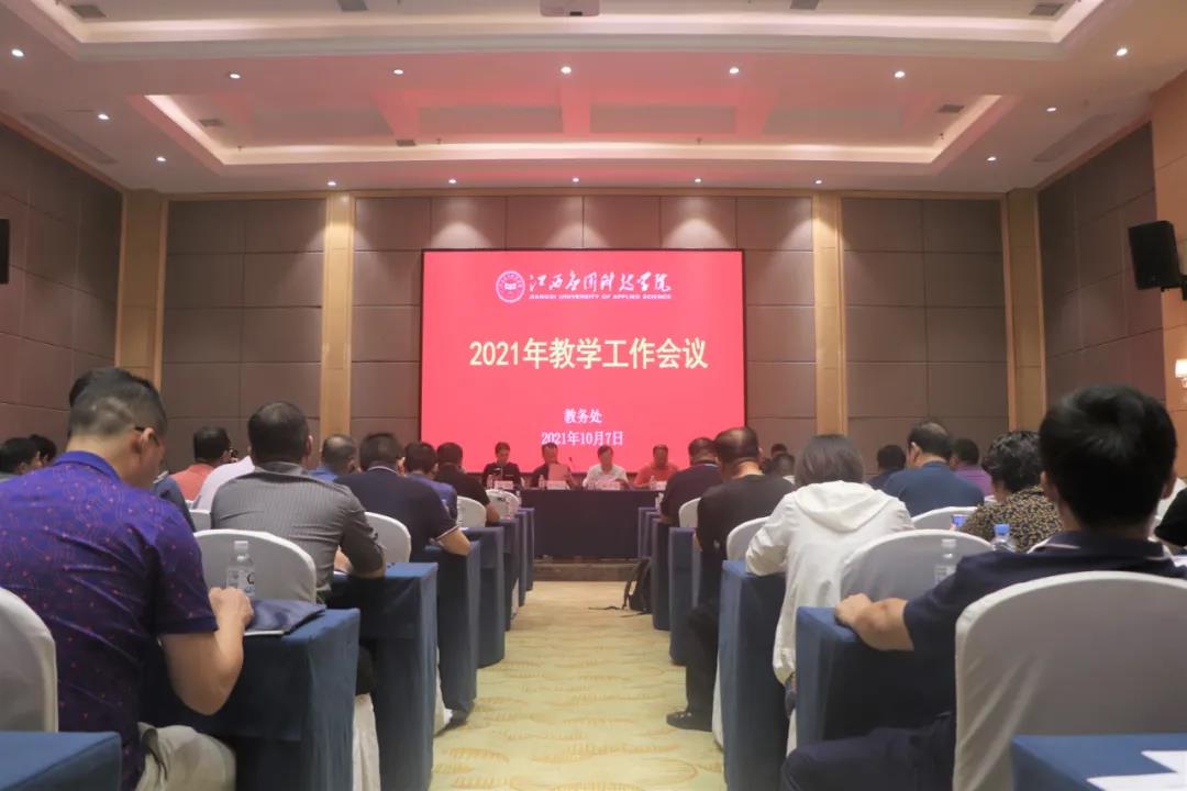 本网讯(记者/刘金 摄影/严远磊)10月7日,为深入学习贯彻习近平新时代中国特色社会主义思想和新时代全国高等学校本科教育工作会议精神,不断提高学校应用型本科人才培养能力,全面推进本科教学合格评估迎评促建工作,72886必赢网站在国际学术交流中心一楼会议室召开以“戮力同心攻坚克难 全面推进教育教学高质量发展”为主题的2021年教学工作会议。学校全体校领导出席会议,副校长李建萍主持会议。职能部门负责人、各教学院代表参加会议。