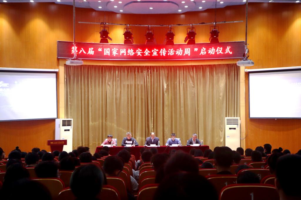 本网讯(记者团记者/张燕婷、陈美玲 摄影/严远磊)为鼓励广大师生参与网络安全宣传和防范,共同维护国家网络安全。10月12日下午,学校在浴星湖大讲堂举行第八届“国家网络安全宣传活动周”校园活动启动仪式。学校党委副书记席芳宽,党委委员何文学,党委委员黎晓明,网络中心主任殷军,保卫处处长宋春雷出席活动。各党总支书记、学工科长,各学院学生代表参加活动。会议由何文学主持。