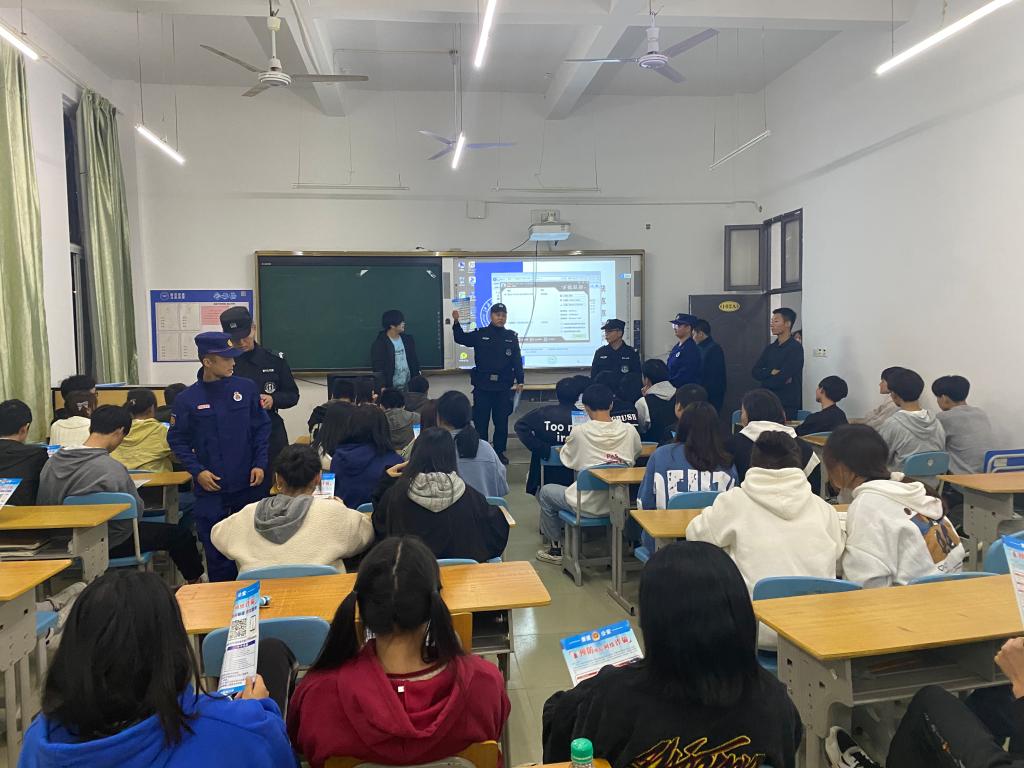 本网讯(通讯员/李思辉)正值第八届网络安全宣传周,10月14日晚上,学校保卫处走进各学院班级,为广大学子送去反诈知识。