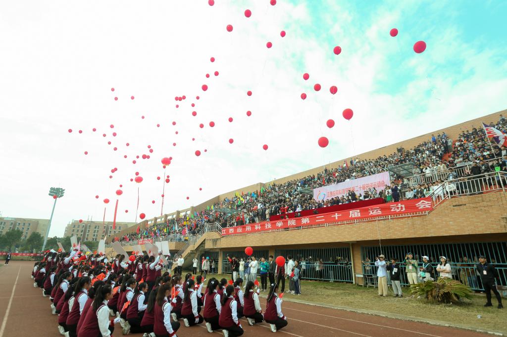 运动会开幕式上,全场师生共唱国歌,向伟大的祖国母亲致敬。风华正茂少年郎,广播体操表演、健美操体育舞蹈等节目活力四射、热情洋溢,充分展现出应科学子的朝气蓬勃的精神面貌、团结上进的优秀品质、开拓创新的钻研精神。各学院方阵的主席台前三分钟表演推陈出新、新颖有趣,既饱含了各学院的鲜明特色,又满怀应科学子的独特朝气。“请党放心,强国有我”,这既是应科学子的嘹亮口号,也是应科学子对党的忠诚许诺。