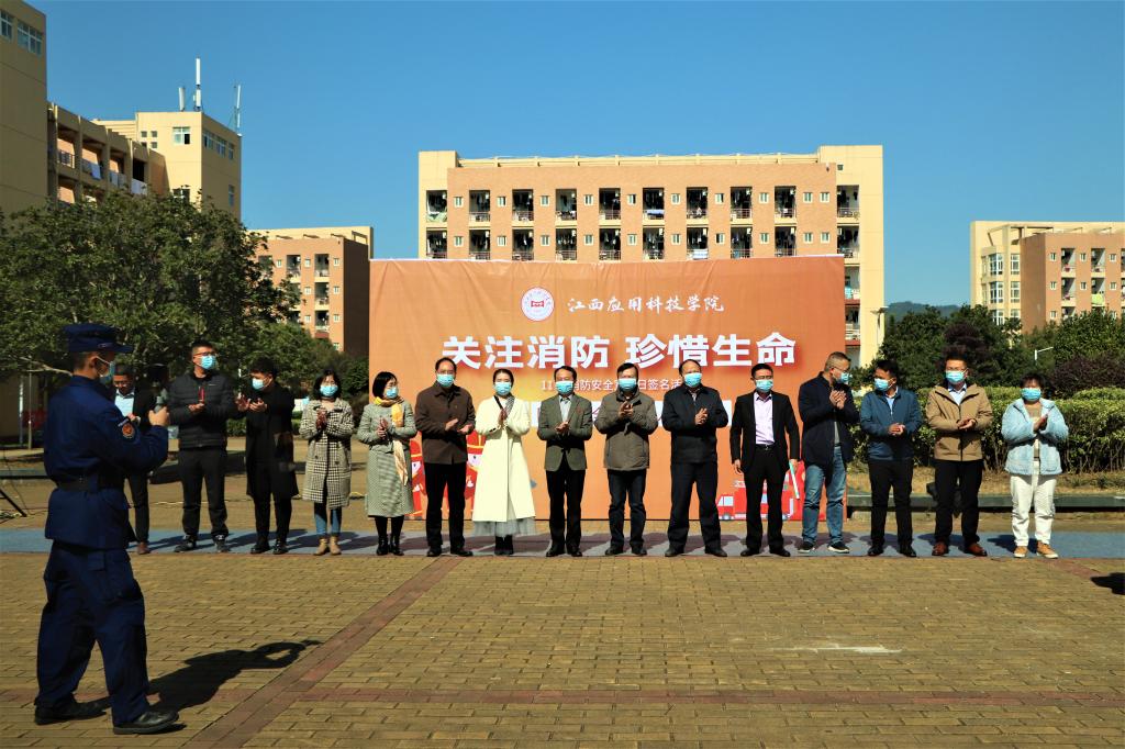 本网讯(记者团记者/黄安然、吴可 摄影/李洪铨)11月9日是消防宣传日,当天中午,为提高消防安全意识,72886必赢网站在七彩人生广场举行消防安全宣传活动。学校党委书记彭迪云,校长黄士安,常务副校长干甜,党委副书记席芳宽,副校长李建萍、胥懋云、张敏等校领导出席活动,学校各分院党总支书记、学工科长、相关部门负责人、学生代表参加活动,活动由保卫处副处长李志家主持。