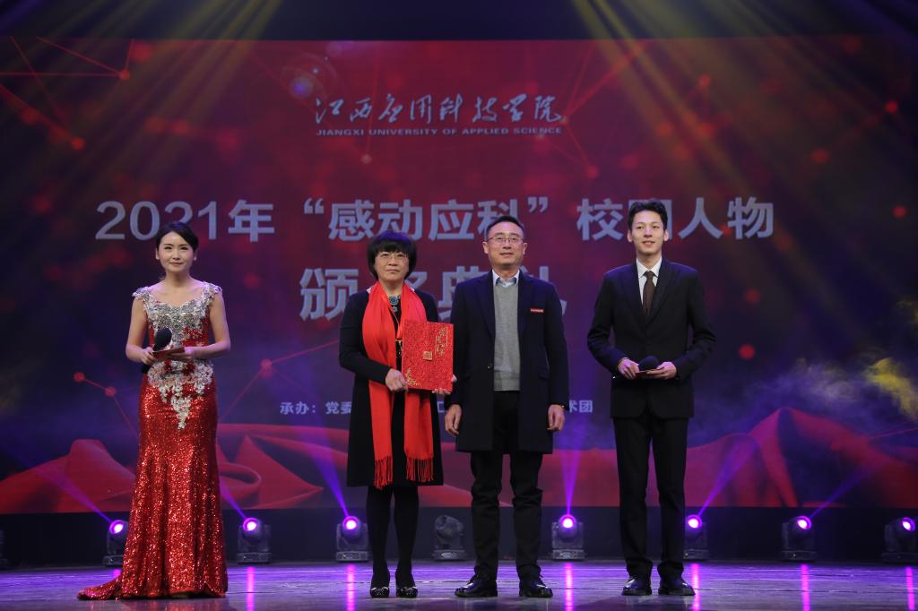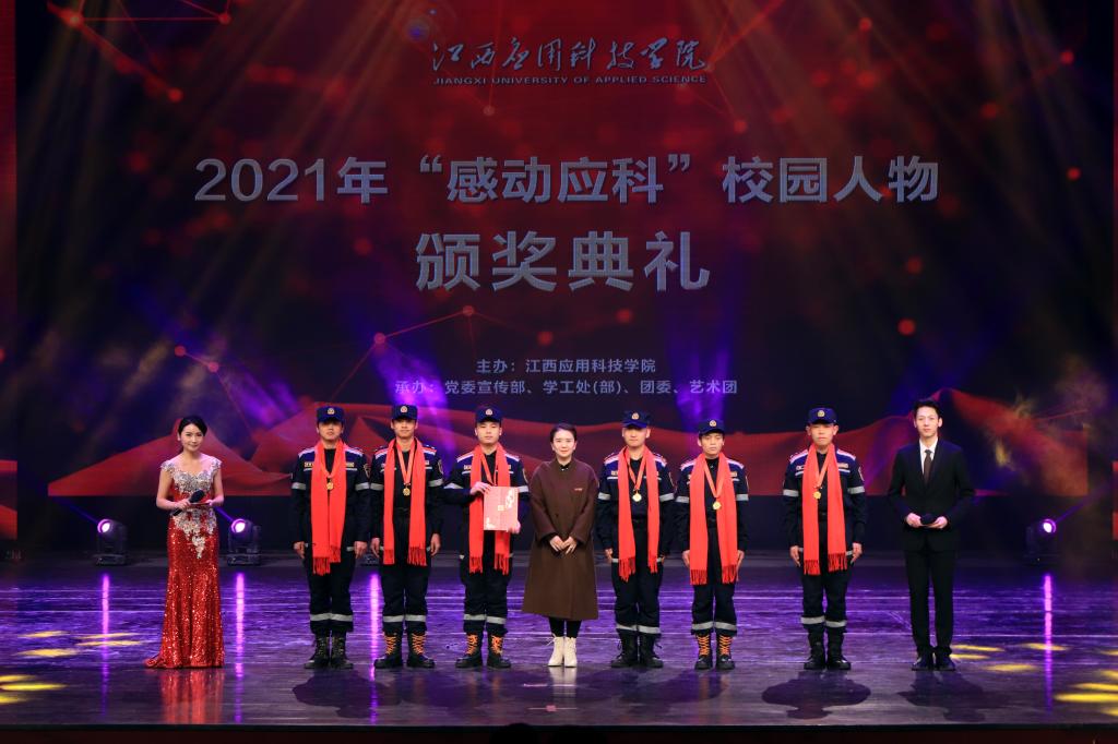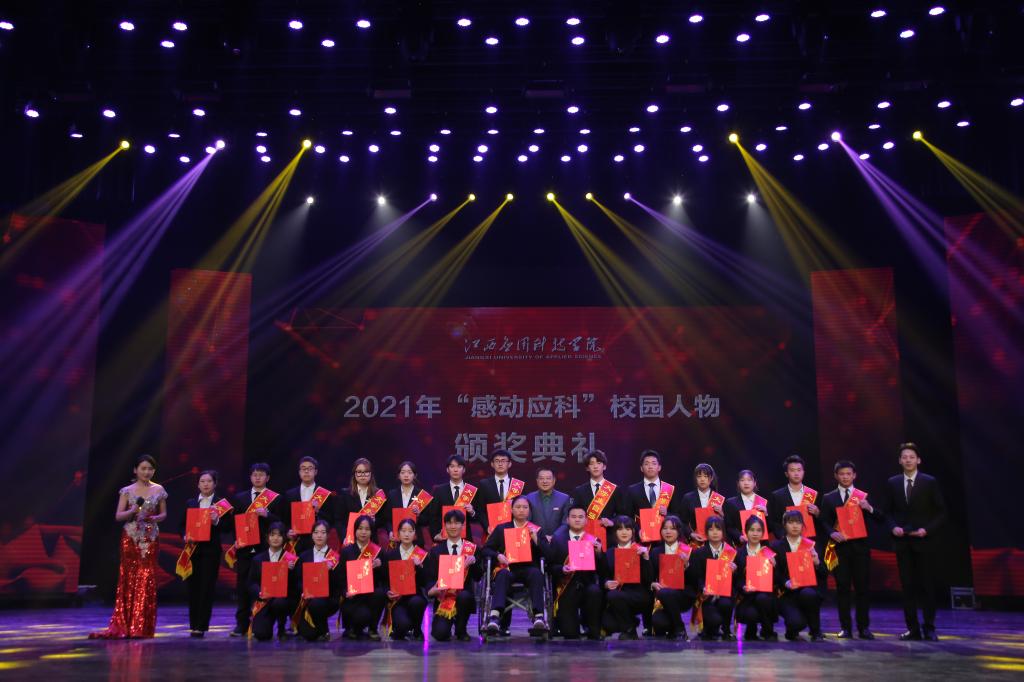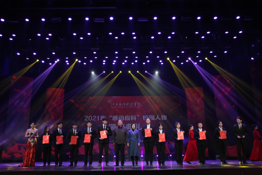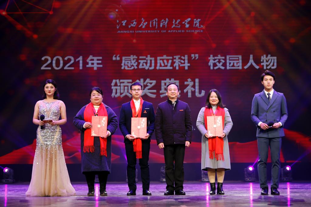 颁奖典礼上,刘光华自然遗产博物馆常务副馆长何平、19本小学教育4班、武装部科长吴腾飞、学习标兵胥志强、林心乐等同学,辅导员秦梦丝老师、赣青突击队、学校董办常务副主任兼产教融合建设中心主任刘宇中、优秀专职教师代表梁烔墙、王莉、琚慧婷,自强之星集体朱广浩、邓集雄等荣获2021年度“感动应科”人物及集体。
