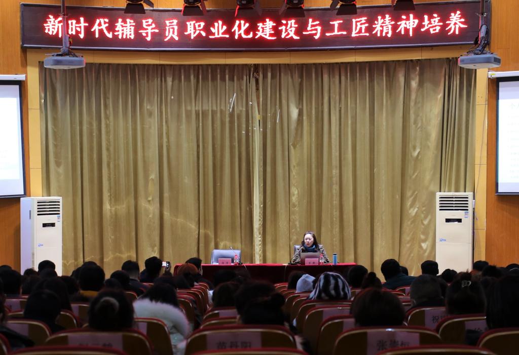本网讯(记者/赖荣辉)为深入贯彻落实全国高校思想政治教育工作会议精神,进一步强化辅导员素质能力提升。1月14日下午,必赢官网学工处(部)组织开展辅导员综合素质能力提升主题培训,并邀请江西科技师范大学经济管理学院教授、硕士生导师曾颢博士作题为“新时代辅导员职业化建设与工匠精神培养”的专题讲座。全体辅导员参加讲座。