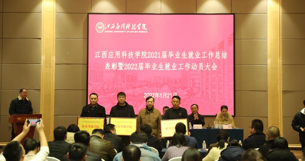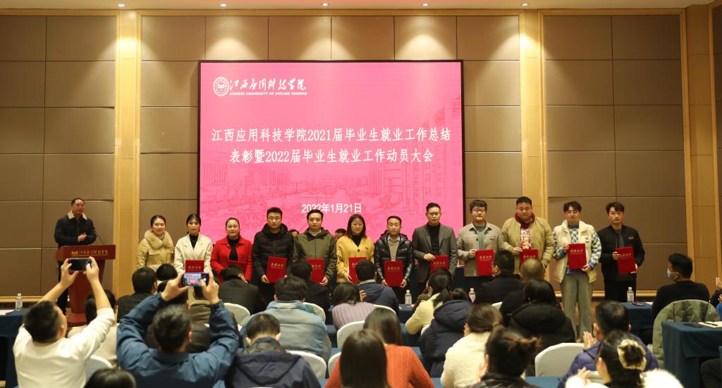 本网讯(记者/熊晨皓 摄影/严远磊)为总结2021年毕业生就业工作经验,更好的部署2022年毕业生就业工作,1月21日下午,学校在国际学术交流中心一楼会议室召开2021届毕业生就业工作总结表彰暨2022届毕业生就业工作动员大会。学校董事长黄玉林、党委书记彭迪云、校长黄士安、常务副校长干甜、副校长李建萍出席会议,相关职能部门、各学院负责人及2021、2022届毕业班辅导员参会。会议由李建萍主持。
