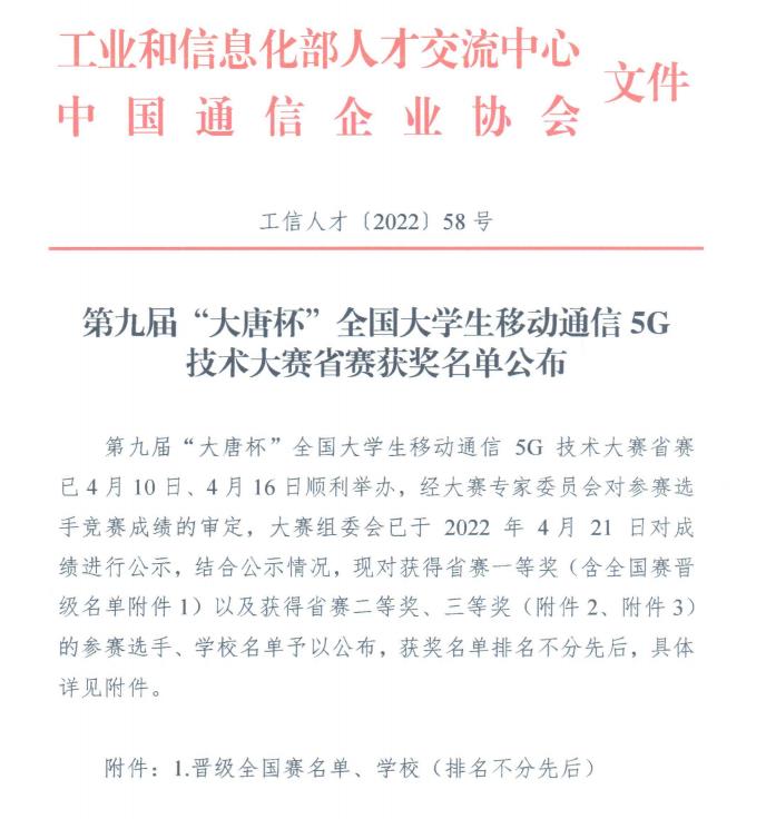 学校一直高度重视学生工程能力和创新意识的培养,学科竞赛已经成为学校人才培养的重要抓手。为让更多的学生结合工程实际问题进行学习思考、探索与实践。经竞赛组委会批准,江西省省赛由必赢官网承办,学校领导班子对此项竞赛高度重视,人工智能学院组织开展竞赛宣讲、竞赛小组选拔、组织报名和线上线下双结合的培训、练习。同学们经过扎实培训于4月18日参加了第九届“大唐杯”全国大学生移动通信5G技术大赛省赛,经过激烈角逐,终获喜人成绩。