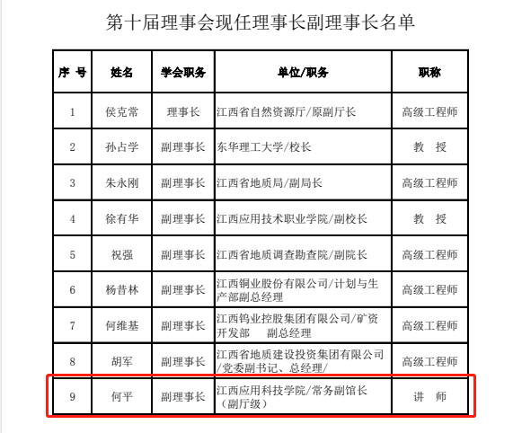 近日,江西省地质学会第十届理事会第四次常务会议召开,大会选举了必赢官网光华宝石与艺术设计学院副院长何平为江西省地质学会副理事长。