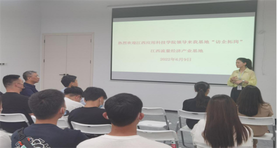 为更好地促进我院学生将来就业打好基础,6月9日下午2点,现代管理学院党总支书记刘国平、现代管理学院学工科科长苏秋月、苏海涛教授、熊小娟老师、廖婧雯老师以及辅导员杜津,前往江西流量经济产业园开展“访企拓岗”促就业专项行动,深化校企合作、加强供需对接,为学生开拓更多就业创业岗位和机会,助力学生高质量就业。