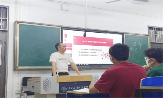 授课中,谢远健老师回溯中国共产党百年的光荣历史,一代代青年党员前赴后继的光辉形象,深入人心!雷锋,潘星兰、丛飞、张丽莉、黄文秀这一个个闪光的名字,如同黑夜中的明灯行进在青年队伍的最前头。历史充分证明:党和国家的发展离不开青年,青年在祖国的发展中大有作为。