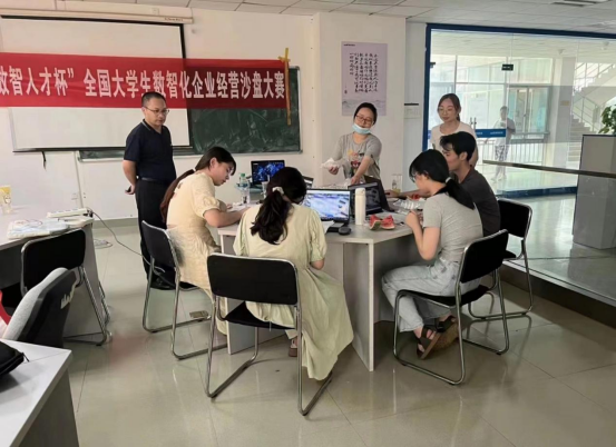2022年6月17日,由中国商业联合会举办的第十八届“新道数智人才杯”全国大学生数智化企业经营沙盘大赛在线上拉开帷幕。此次大赛吸引了来自全省20余所高校,总计200多名学生的热情参与。财经学院用友校企班8名同学组建了两支队伍,在科技信息中心306实验室参加比赛。