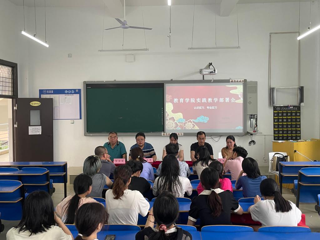 2022年6月19日,教育学院围绕学前教育专业2021级认识实习、2020级专业实习工作,专门召开实践教学动员部署会。学院院长罗明丽、党总支书记宋春雷、副院长张凌海,教务科科长邹振根、办公室副主任祝婷,学前教育教研室主任卓筱芸、副主任周文睿,实习带队指导老师和部分学生代表参会。会议由学院党总支书记宋春雷主持。