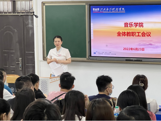 为稳步推进学院各项工作的顺利开展,6月23日上午10:00,音乐学院在三达楼阶梯教室四召开全体教职工大会。常务副校长干甜、评建办主任刘海梅、质量监控中心主任樊立君出席,音乐学院党总支书记许维东以及全体教职工参加会议,会议由音乐学院常务副院长杨力主持。