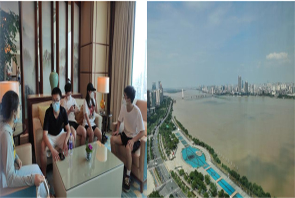 第四部分是我们实地参观酒店的基础设施,课本知识与理论相结合,进入酒店的最高层,32层豪华阁参观。设有室外露台,宾客可于室内外饱览180度宽幅绝美江景。让我们进一步认识到酒店地理位置选址的重要性,参观的过程中服务人员为我们提供的礼仪服务也让我们认识到了五星级酒店服务的标准和层级。