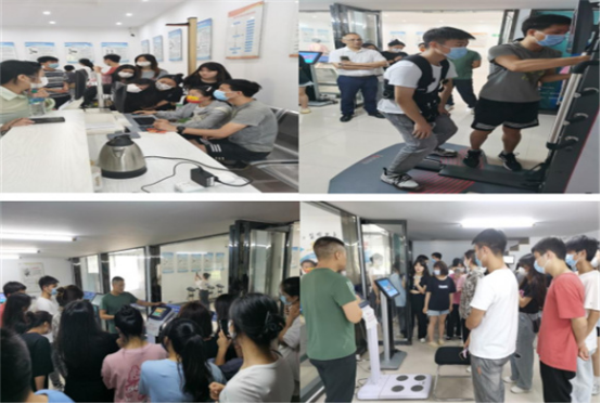 在此次专业实习过程中,涂松鹤经理向同学们介绍了体质监测理论、数据信息上传、检测仪器实操等方面知识,并指导学生进行严格的实操演练,确保同学们都能熟练掌握测试方法。同学们在涂经理专业指导下有序完成了体成分、身高、体重、肺活量、握力、仰卧起坐、选择反应时、闭眼单腿站立、纵跳、坐位体前屈、俯卧撑、台阶试验以及亚健康、动脉硬化、骨密度等项目的测试。完成测试后,涂经理对同学们所获得的亚健康评估报告进行详细讲解分析,并为同学们提供科学综合锻炼指导报告和运动处方。