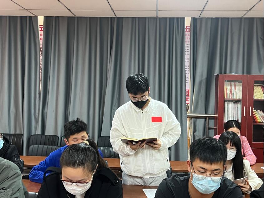 学生党支部书记许永飞领学了《习近平总书记关于坚持自我革命、全面从严治党的重要论述》,习近平总书记关于坚持自我革命、全面从严治党基本经验的科学总结,将中国共产党对执政和执政党建设的规律性认识提升到全新高度,充分彰显了中国共产党自我净化、自我完善、自我革新、自我提高的高度自觉,对于取得全面从严治党更大战略性成果,巩固发展反腐败斗争压倒性胜利,实现新时代纪检监察工作高质量发展,具有重要指导意义。