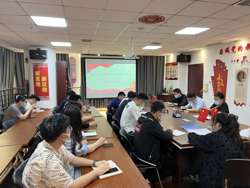 4月19日下午,建筑工程学院教工党支部在学院302党员活动会议室开展专题学习2022年全国“两会”精神。学习活动由教工党支部书记许冬冬主持并带领学习,教工党支部全体党员通过线上线下相结合的方式参与学习。