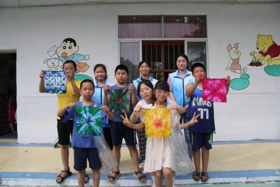 劳动实践齐动手,艺术素养扎心中。队员联合青协成员开展了一节积厚流光、异彩纷呈的扎染课。在拿到扎染的工具时,孩子们都耐心地听从队员的指导;在青协成员的协助下认真地观看视频,一双双渴望的眼睛透露出孩子们的跃跃欲试。