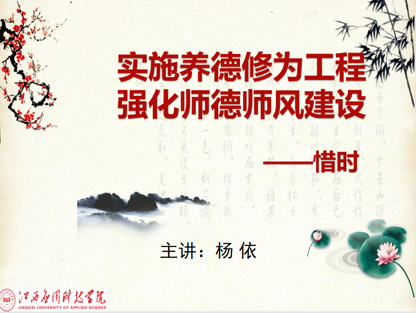 杨依老师就惜时,从时间的特点、如何有效的进行时间管理及好处、时间管理的要诀三方面阐述了对养德修为惜时的认知。