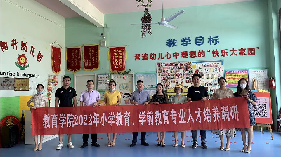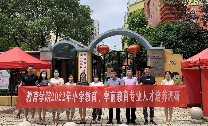 为进一步推进学院本科专业建设,做好2022版本科人才培养方案修订工作,7月29日,教育学院院长郑昌保、学前教育专业教研室主任卓筱芸、学工科长张伟健、学前教育教研室骨干教师及辅导员代表一行赴南昌市慧凡同乐幼儿园、南昌市瑶湖保育院翰园部、南昌太阳升幼儿园开展2022级人才培养方案修订调研。