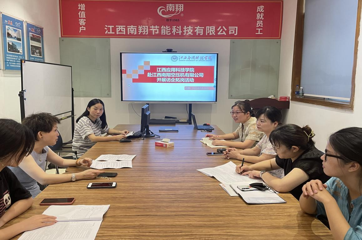 7月25日上午,为更好地促进我院学生将来就业打好基础,现代管理学院教师团队前往江西南翔空压机有限公司开展“访企拓岗”活动。此次活动旨在加强校企产教融合、协同育人,为我们毕业生就业开拓更多更优质的渠道。